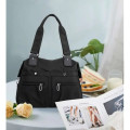 New Portable Nylon Cloth with Cowhide Shoulder Bag(Black)